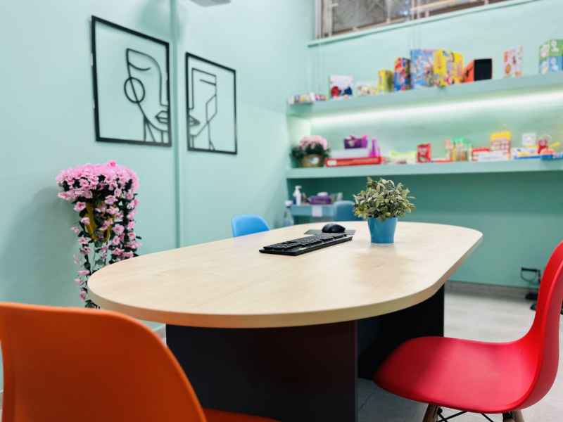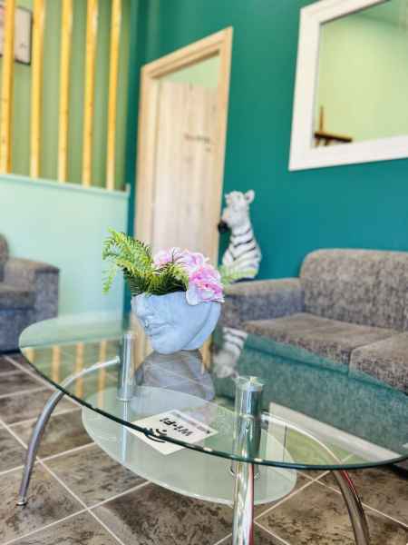 Ο άνετος χώρος υποδοχής στην είσοδο του Κέντρου εξασφαλίζει μια ευχάριστη αναμονή καθώς διαθέτει και βιβλιοθήκη ευρείας θεματολογίας.